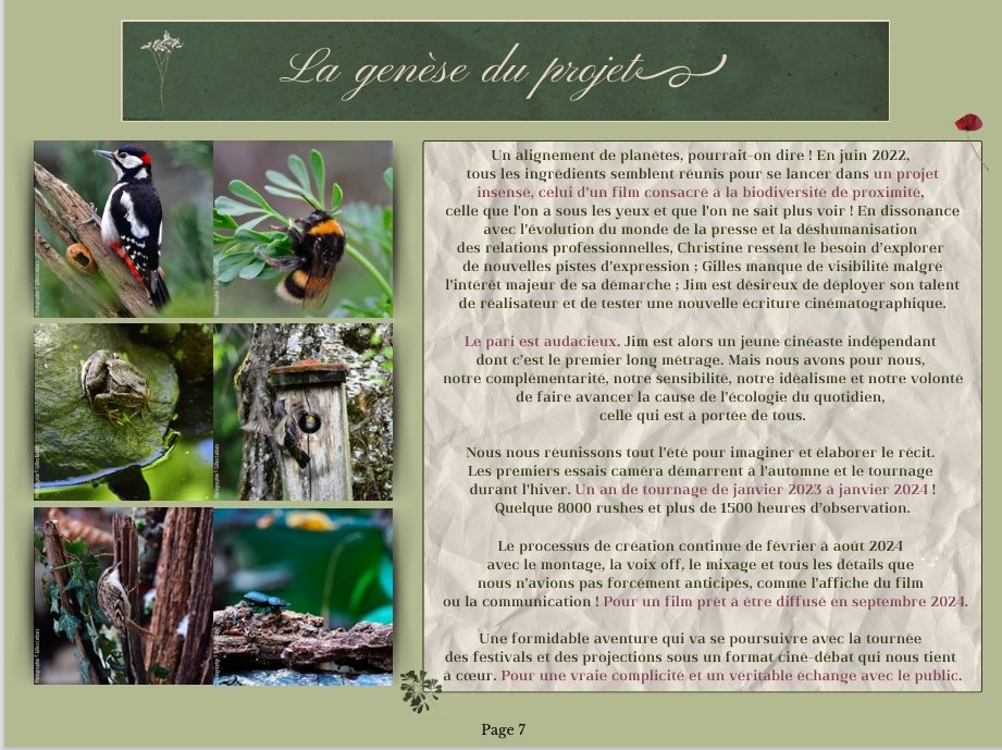 Un film documentaire sur la vie sauvage au pas de sa porte