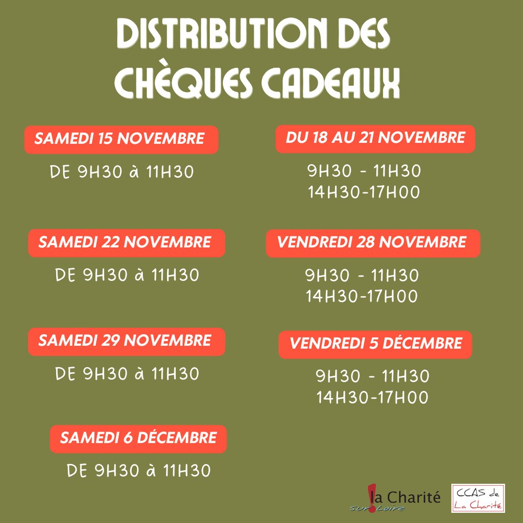 👉 Venez avec votre carte d'identité à la Mairie lors des permanences pour récupérer votre pochette cadeau, entre le 15 novembre et le 6 décembre (voir dates et horaires dans le visuel).